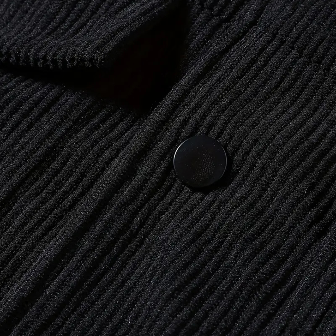 Denne herrejakken i ribbet cord-stoff kombinerer en bomberstil med et foret innvendig område for overgangsmånedene. Den er egnet for daglig bruk og kjennetegnes av klare linjer og en strukturert overflate.