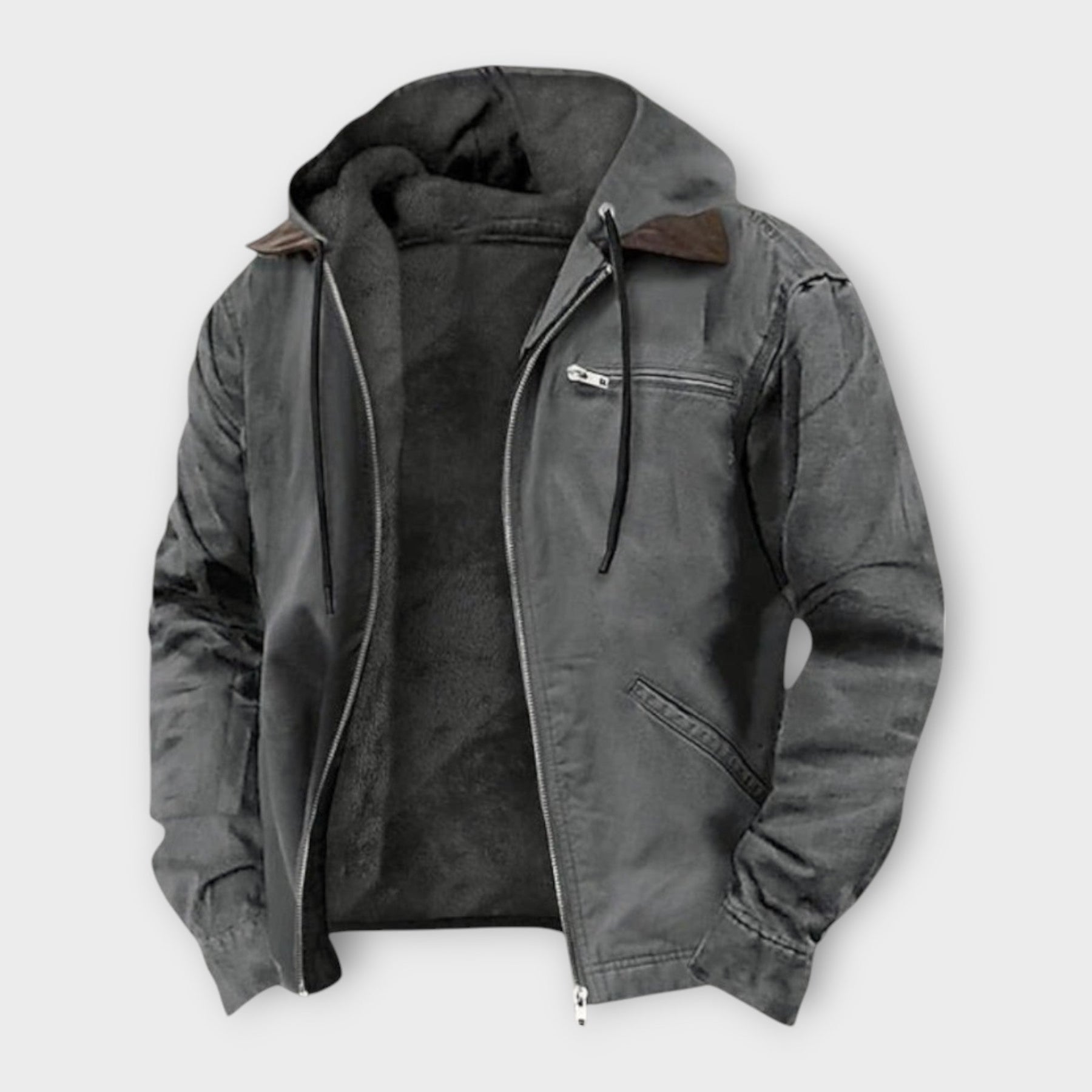 Denne hettejakken for menn til høsten har et formet ytterlag og et foret innerfôr for ekstra isolasjon. Den har en hette med justerbare snorer, samt flere lommer for oppbevaring av hverdagsgjenstander. Den er egnet for uformelle anledninger eller situasjoner som krever et mer strukturert utseende, og er et tilpasningsdyktig yttertøy for de kaldere månedene.